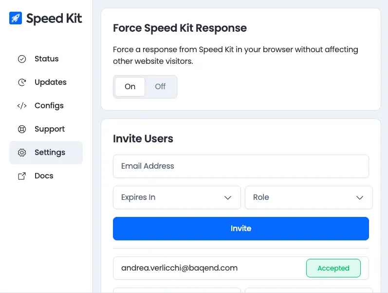 . This will activate Speed Kit only for your browser, allowing you to test its functionality safely while it remains off for everyone else.