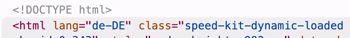 tag at the top of the DOM tree. If the page was delivered by Speed Kit, it will initially have the classspeed-kit-dynamic-loading
