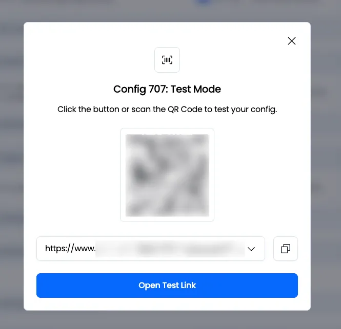 3. Click the info icon next to the toggle to get a unique link and QR code. Use this link to test the new configuration in your browser or on other devices.