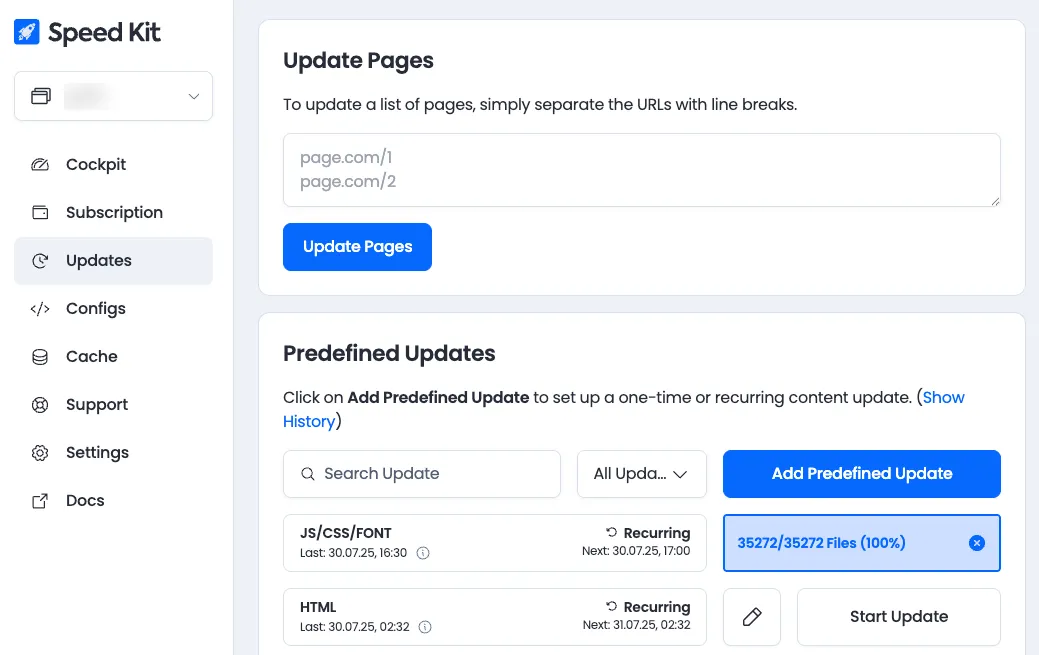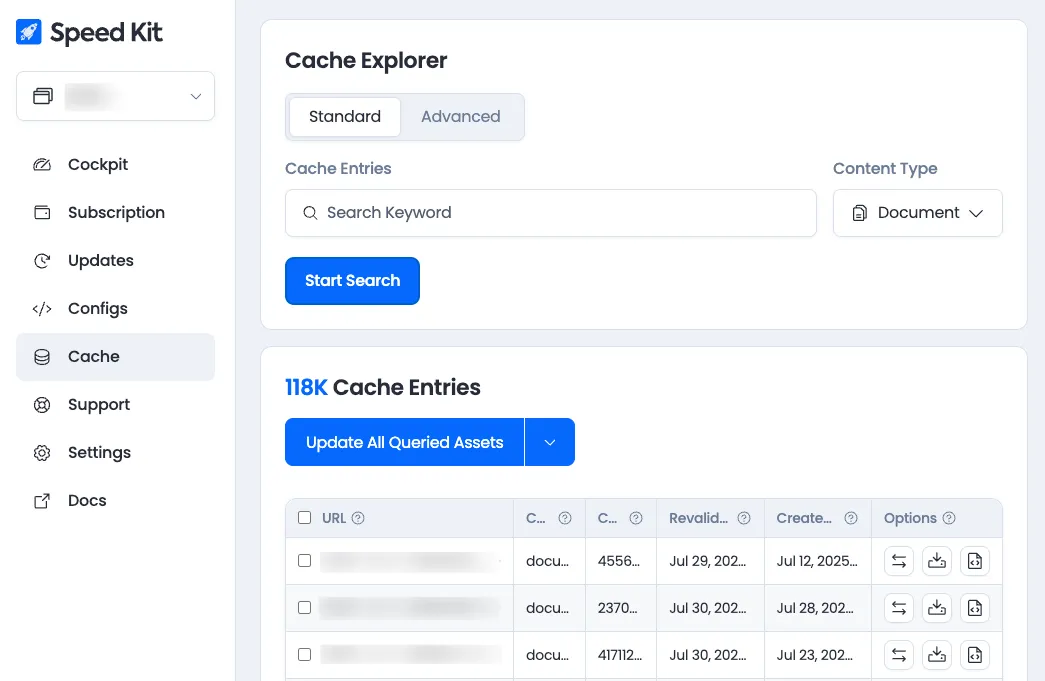 This powerful section allows for the detailed management of all Speed Kit rules and settings.