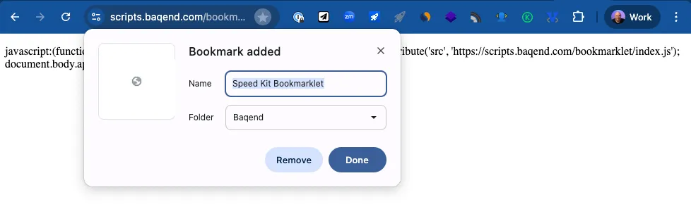 - Click the Speed Kit bookmarklet or run the script in the console.