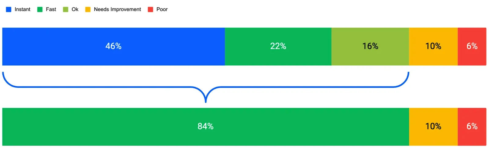 To provide more actionable goals and reflect the true impact of speed, Speed Kit splits Google's "Good" category into three distinct tiers. This high-resolution standard is used across all of our tooling, including our RUM dashboards and reporting, to help you focus on optimizations that deliver a truly superior user experience and drive business success.